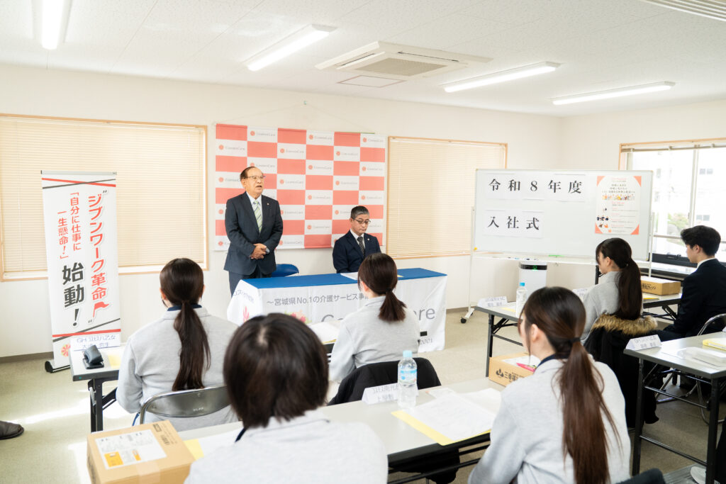 仙台市も桜の開花宣言がなされた翌日 若々しい笑顔とやる気に満ちた新卒職員たちをしっかりと育て上げ、介護職として花開くことができるように これから私たち自身も 皆の見本となれるように努めようと意を決した一日でした。