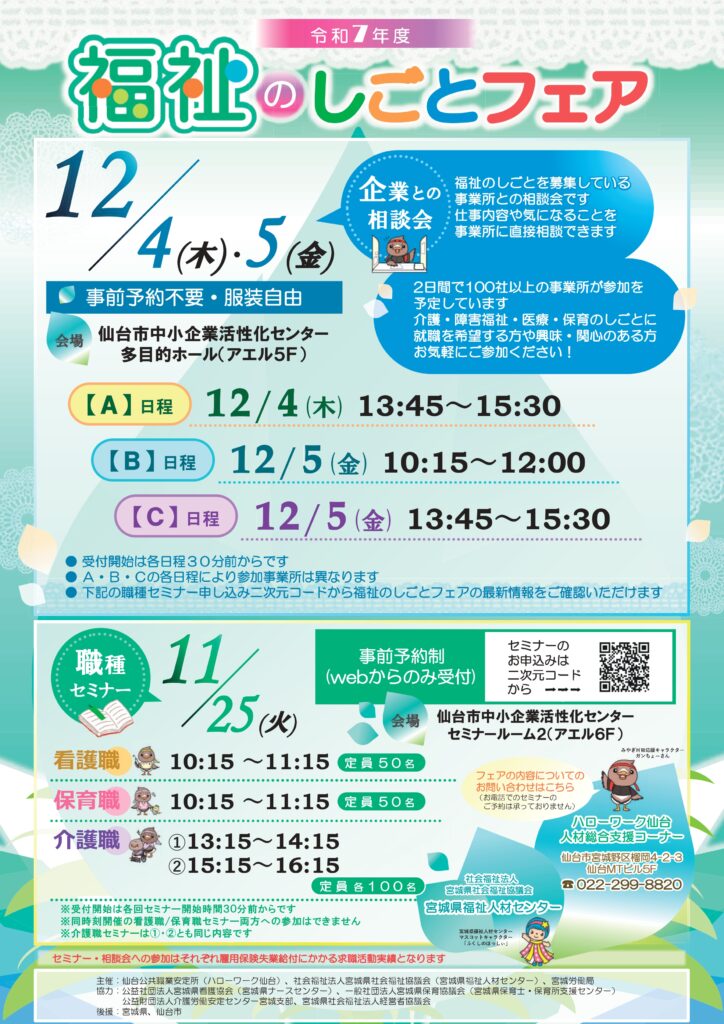 今年最後の福祉業界就職イベントが上記日程で開催されます。